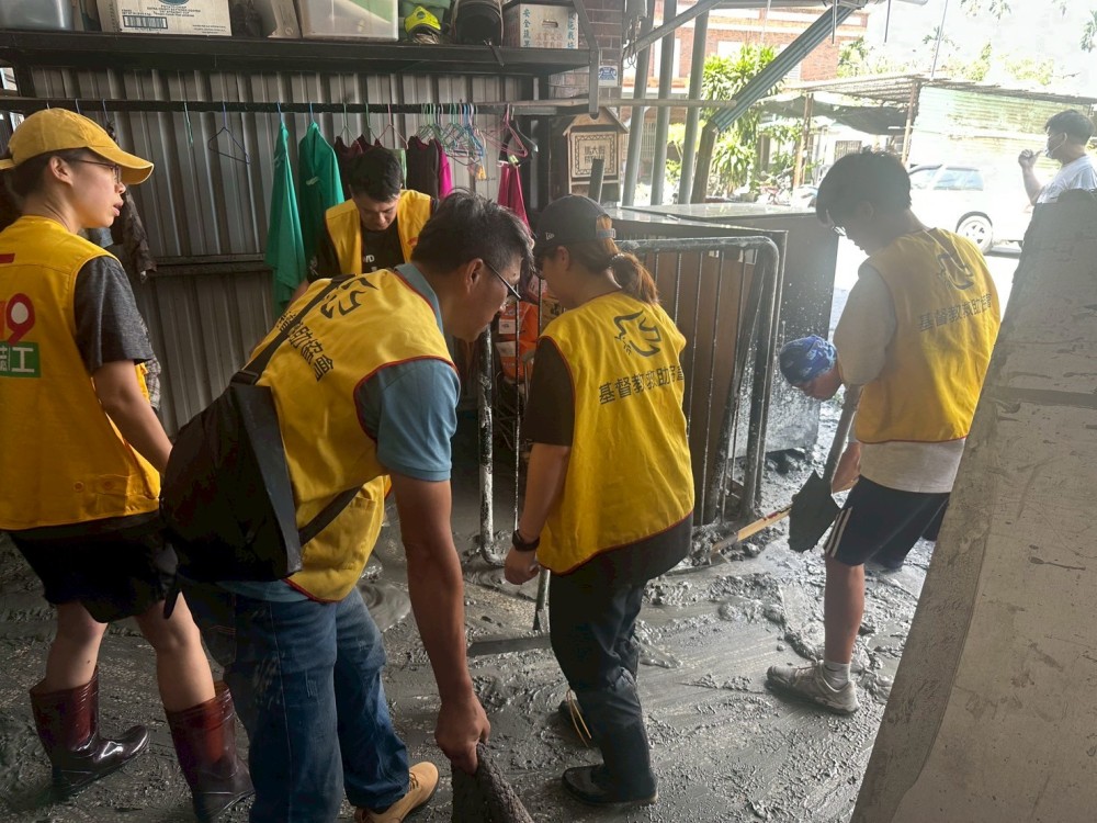 今日(25日),救助協會人員與志工已進入受災嚴重區域,透過多個1919服務中心投入志工協助家戶清掃。現場可見受災戶家中淤泥堆積達30至60公分深,因此,協會已積極調度小型山貓等機具,盼提升志工工作效率,讓受災家庭盡快重建家園。今日總共動員14間1919服務中心與教會志工共43人,分別協助家戶清理,及物資管理。