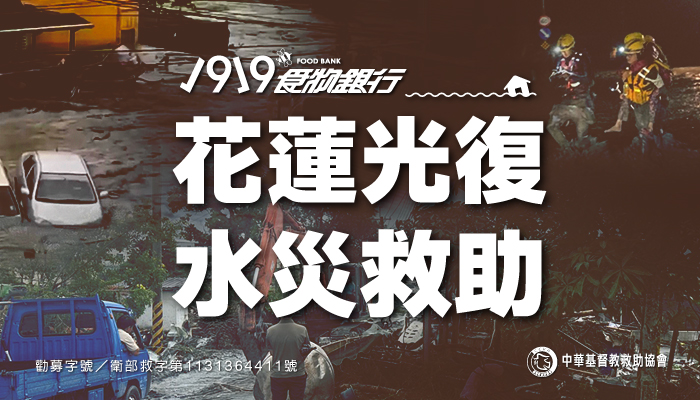 目前救助協會已動員全台倉儲盤點安置與膳宿物資,並持續招募志工前往支援。誠摯邀請社會大眾與我們一同伸出援手,透過捐款支持【1919食物銀行-0923花蓮光復郷水災救助】,提供受災家庭最即時的幫助。