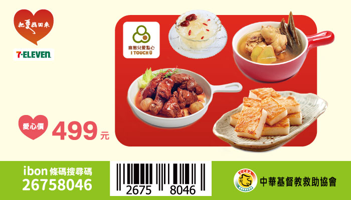 即日起至12月28日止,您可透過ibon認捐年菜,幫助經濟困難家庭溫暖過節。民眾認捐的年菜,將由救助協會送至弱勢家庭的手中,為他們的年節餐桌加菜。