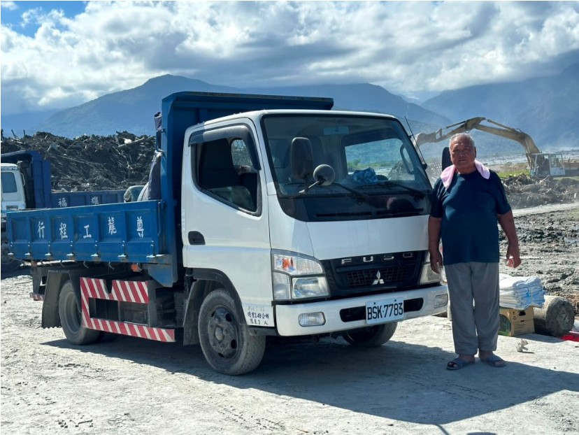 光復鄉阿陶莫部落位於馬太鞍溪旁,是本次首當其衝的重災區。住在河岸第一排的阿龍(化名)夫婦,家園被泥流吞沒、工作中斷,生活陷入困境。經太巴塱長老教會那麼好‧ㄚ讓牧師通報後,救助協會媒合阿龍加入「以工代賑」的行列,駕駛其尚可運作的17噸卡車,協助投入清運。現在每天清晨,他都要往返光復與太巴塱間協助清淤。對他而言,這份工作不僅是經濟援助,更是一份重生的力量。