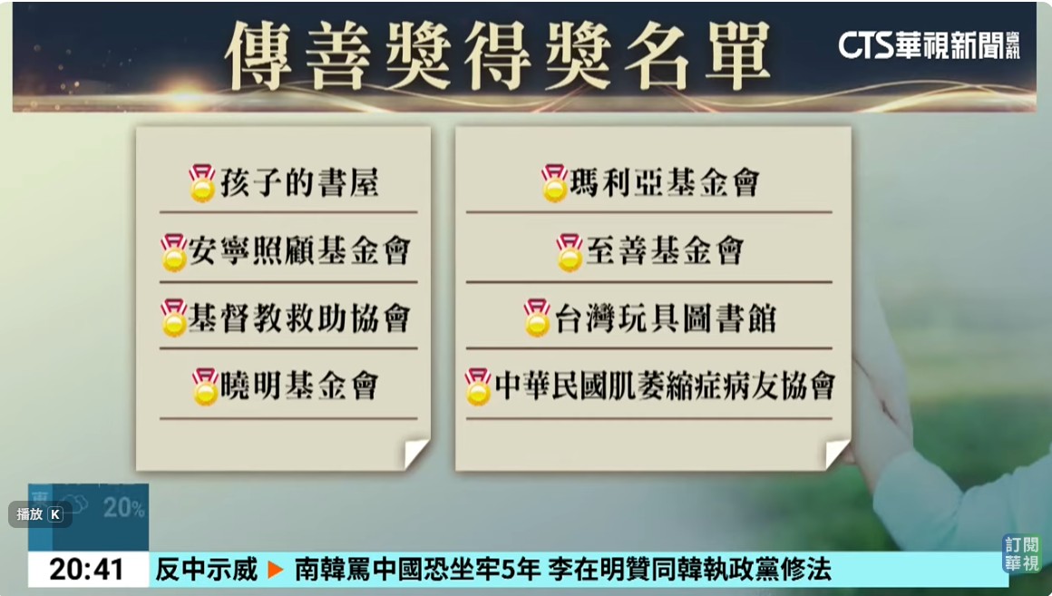 第11屆傳善奬揭曉 8家社福機構獲獎_華視新聞