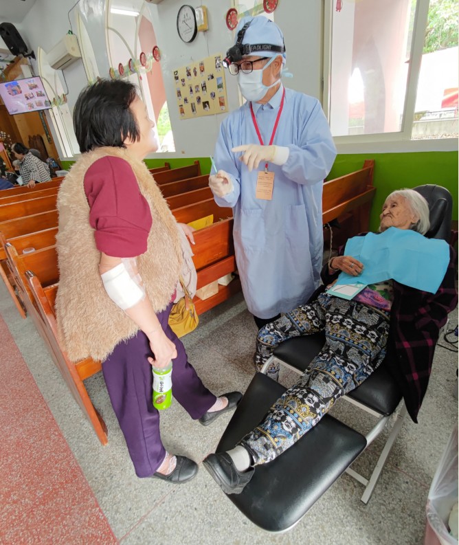 今天的口腔健檢由蕭正光醫師負責。擁有豐富臨床經驗的他,不僅為長輩們仔細檢查牙齒,也耐心說明如何申請假牙補助,讓長者與家屬都能清楚了解。93歲的江阿嬤在68歲女兒陪同下前來。女兒感動地表示,非常感謝蕭醫師細心的提醒與詳盡的解說,讓母女倆受益良多。