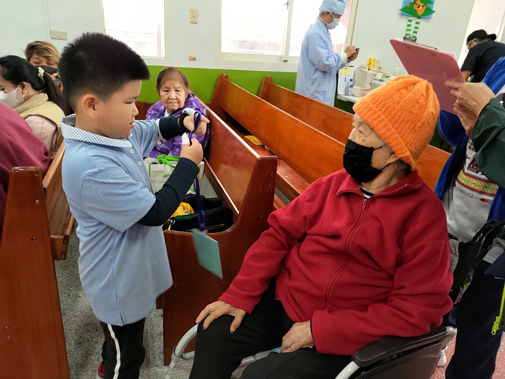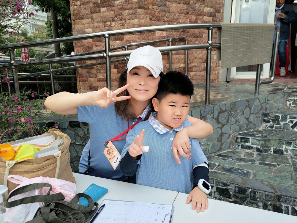 去年,她帶著就讀小二的大孫子晨熙一同前來;今年,則換成讀小一的小孫子晨語隨行。今天,晨語協助發放名牌、示範口腔操,還將糖果分送給陪同長輩前來的孩子,成了團隊中最可愛,也最得力的小幫手。