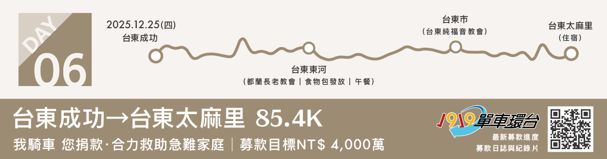 第六天 12 / 25(四)台東成功-台東太麻里 85.4K 公里