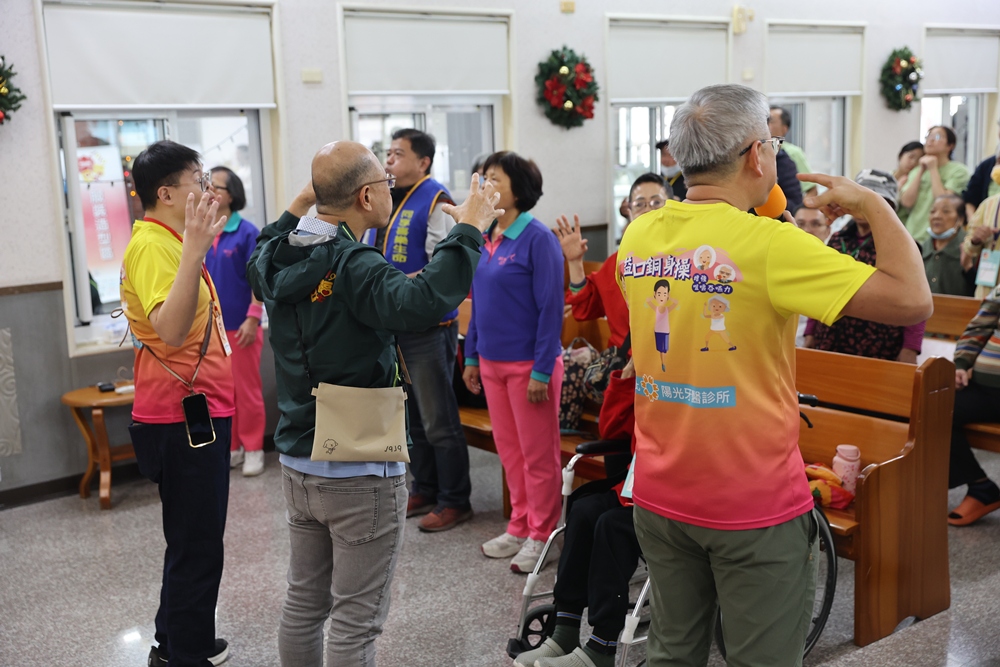 除了義診,黃醫師父子也帶領長輩一起做「益口銅身操」。隨著年齡增長,咬不動、吞嚥困難,常成為長輩難以啟齒的日常困擾。而肌肉退化、口舌無力,更造成吃不下、吃不多,營養不足,健康也逐漸亮起紅燈。