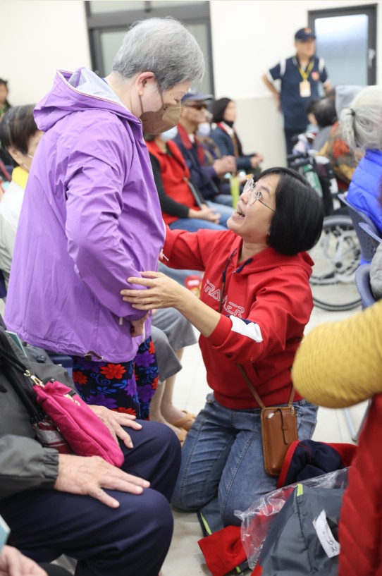 多年來持續支持幸福巴士的 TRAVELER 旅行者公司南區主任吳珮慈,今年同樣帶著同事與家人一起投入。她不僅出錢出力,更親自蹲下、跪地服務,只為讓每位阿公阿嬤被尊榮、被寵愛。那一刻,服務不只是服務,更是一份發自內心的溫柔。