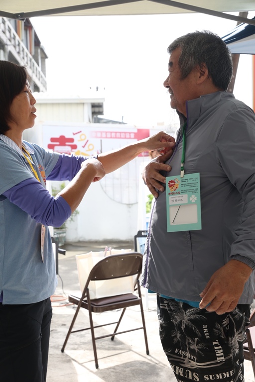 在幸福巴士志工施婉麗溫柔、耐心地陪伴下,原本一再婉拒服務的蔡大哥,終於點頭,穿上了新夾克。那一刻,改變的不是外表,而是心防慢慢被突破了。服務,有時不是急著給予,而是靜靜等待他願意。