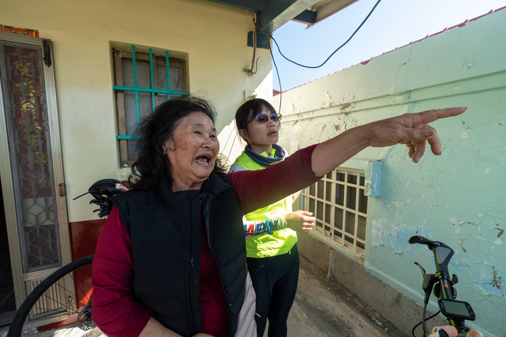 西寮里多為獨居長者,有的屋頂至今仍破損,有的牆面傾斜,院落裡散落著被颱風與海水倒灌沖毀的殘牆破瓦。這個曾以牡蠣養殖與魚塭維生的小漁村,因風災幾乎滅里,復原之路漫長而艱辛。
