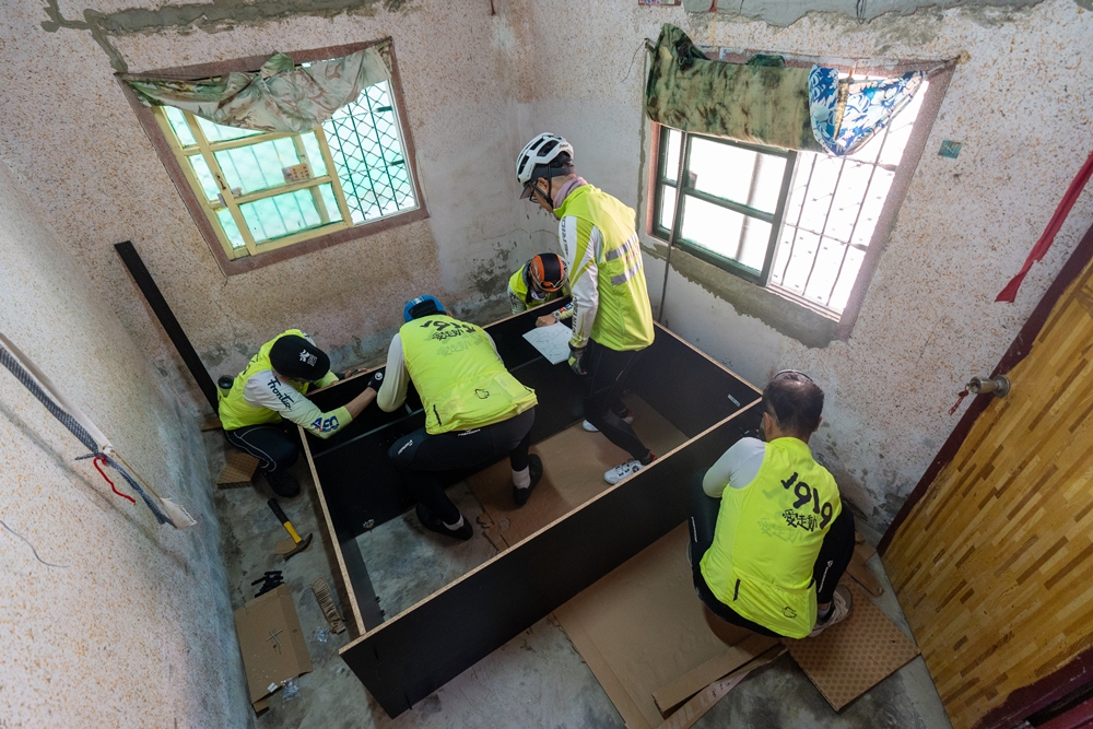第二組的王向前分享,幾天來一起騎行所培養的默契,讓家具組裝幾乎不需多言便能完成。第三組探訪的是一對聾啞夫婦,王佳鳳提到,屋主以肢體動作描述颱風當天的驚恐,雖無言語,卻讓人感同身受。第四組的楊國華則直言,現場真的是「家徒四壁」,尤其當中有一戶是老母親與智能障礙的兒子相依為命,讓他心情極為沉重。