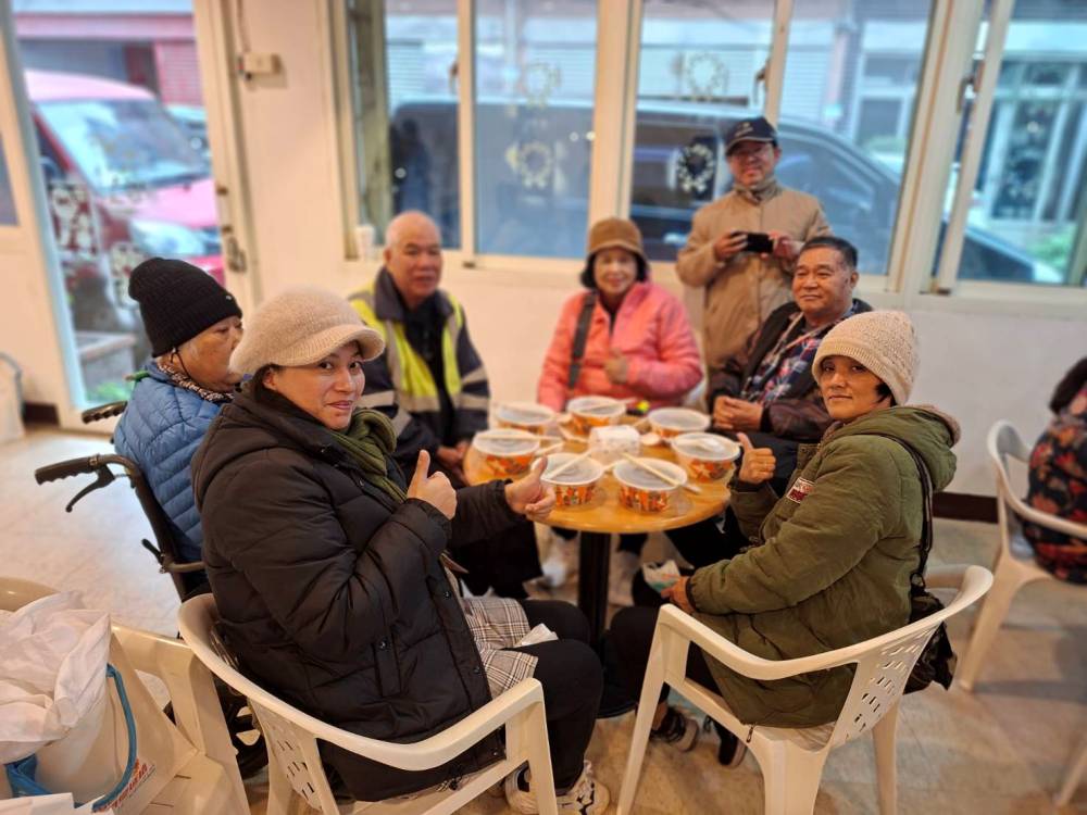中午,幸福巴士團隊與長輩們一同在佳音教會用餐,午餐由三商餐飲提供多樣便當。在寒風中,三商企業的慷慨捐助,為大家送上滿滿溫暖。