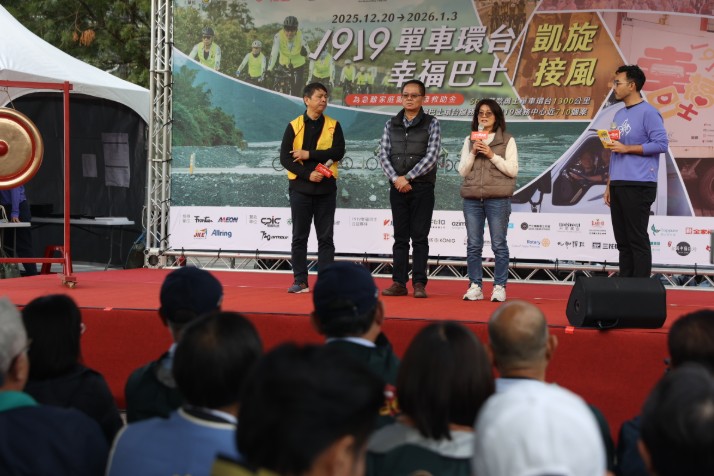 其中,由55位環台募款勇士組成的「1919單車環台車隊」,以及滿載愛心物資的「1919幸福巴士」,於去年12月20日自台北馬場町紀念公園啟程,歷經15天、環繞全台。自去年7月起,單車環台活動共募得新台幣2,130萬元,幸福巴士則深入各地,服務687位弱勢長輩,將關懷送到最需要的角落。