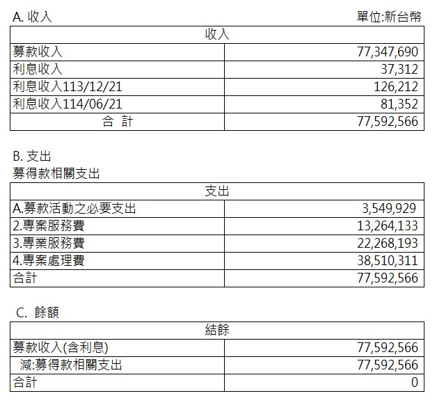 募款活動財務使用期間:113年1月1日至115年12月31日