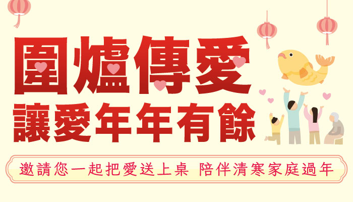 圍爐傳愛,邀請您一起把愛送上桌,陪弱勢家庭過年