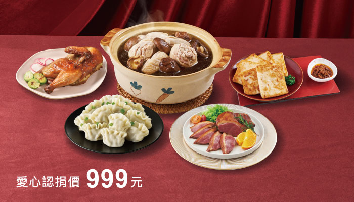王品集團顧念弱勢家庭的需要,攜手「 1919 食物銀行」 發起「公益年菜認購計畫」,邀請愛心大眾一人認購一套年菜組(王品嚴選益起團圓宴),讓愛心化作一道道熱騰騰的佳餚,陪伴弱勢家庭,在除夕夜也能團圓圍爐、安心過年。
