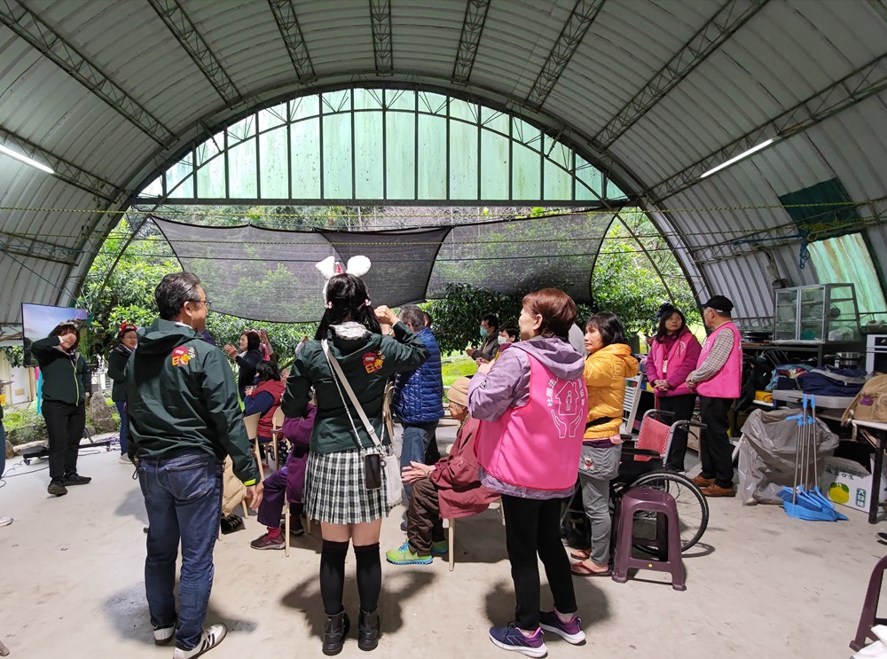 一早,三星鄉牛鬥靈糧堂服務中心的吳美菊牧師,便請志工將社區長輩一一接來。首先,由志工沈安蓉帶領天使歌舞團表演熱歌勁舞,讓原本靜謐的山谷頓時充滿聖誕的歡樂氣息。