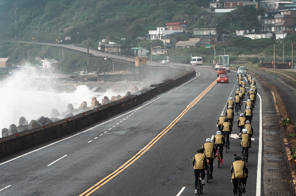 清晨的基隆港,空氣中瀰漫著濕潤的鹹味。但隊長劉筱萍的一席話,為隊員們定錨了出發的核心——「愛」。懷著這份初衷,1919單車環台車隊排成兩列縱隊,告別雨都,沿著台2線濱海公路,迎著冷冽的東北季風,向台灣極東點——三貂角挺進。