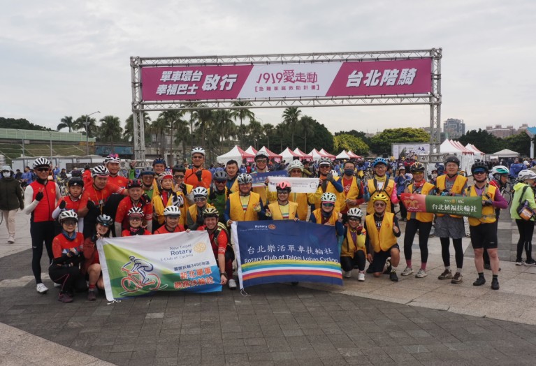 「台北樂活單車扶輪社」已連續4年支持陪騎活動,擔任志工指揮車友行進路線。社長Louise今年共帶了32位社友前來幫忙,也同時邀請「新北樂活單車扶輪社」10位社友參與。Louise說:「我自己也是1919陪讀計劃的捐款人,救助協會的活動很有意義。有我們當作後盾,急難家庭一定可以放膽前進,越來越好。」