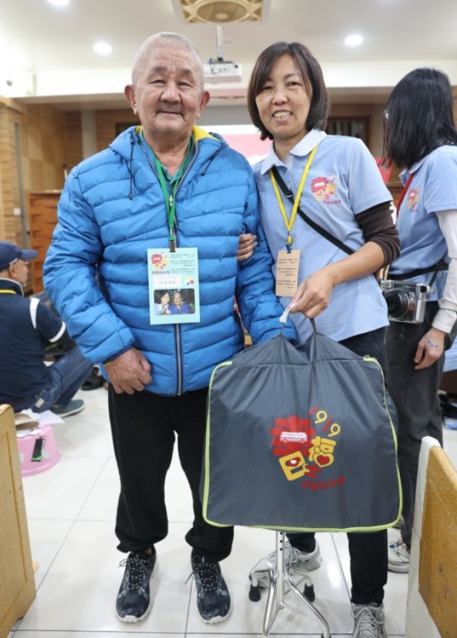 80 歲的阿福阿公,揹著親手編織的包包,拄著拐杖、穿著雨鞋前來。他曾是獵人,也是生活藝術家。只見他一邊試穿外套,一邊開心地說:「這外套好保暖喔,拉鍊也好好拉!」接著,他向志工展示自己穿了多年的舊外套——拉鍊早已壞掉,但他捨不得丟,乾脆縫上魔鬼氈繼續穿。