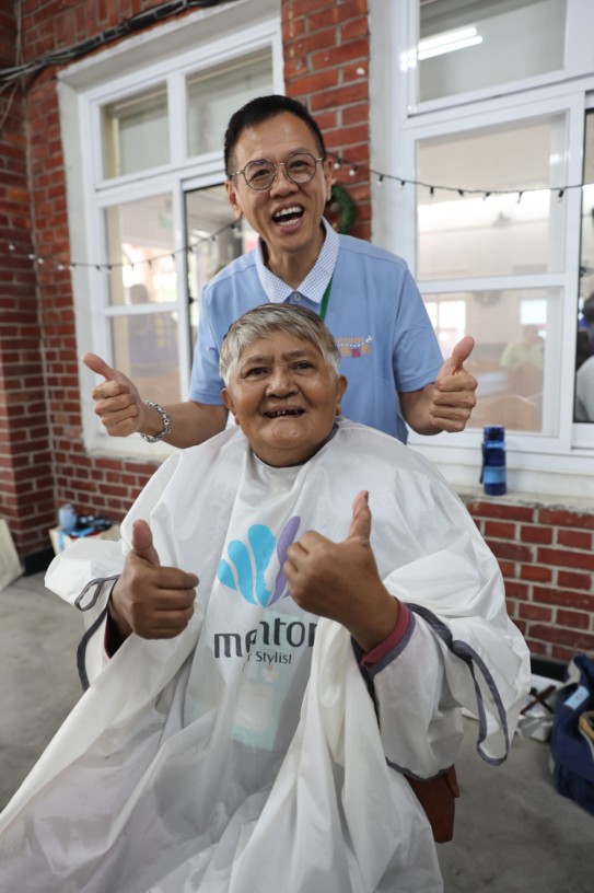 69歲的美妹阿姨是台東排灣族人,與兒子每三天就得洗腎一次,生活僅靠兒子打零工維持。今天在曼都設計師林振三部長的巧手下,她剪了個俏皮的妹妹頭,整個人看起來年輕好幾歲。讓她忍不住讚嘆:「masalu!」(太棒了)。能在同一天享受到從頭到腳的服務,對她而言,是難得的幸福時刻。