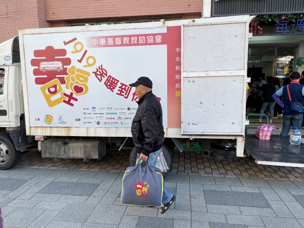 他平時就是1919食物銀行的案家,卻很少踏進教會。志工朱玉琳執事說,通常只有親送食物包時才會見到他。今天,他願意走進教會,實屬難得。玉琳笑著說:「這代表幸福巴士真的吸引到他了。」