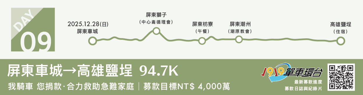 從墾丁出發,南台灣迎來藍天白雲的好天氣。進入第二個禮拜,車隊的節奏也悄然轉變——有些勇士在此暫別旅程,也有新夥伴以接力方式加入,繼續推動騎程。